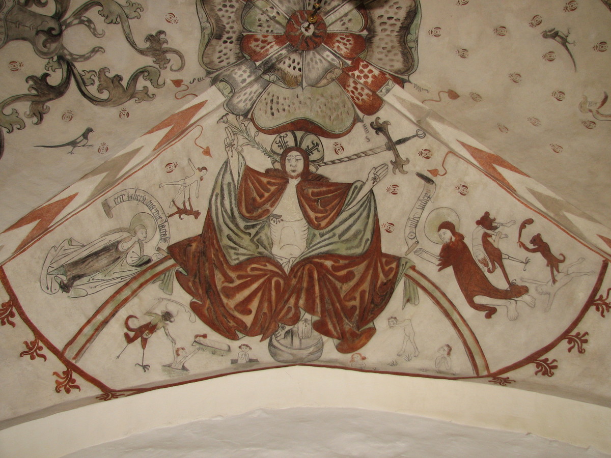 Turens mål var kirken for at se de mildest talt specielle kalkmalerier. Nærmest piktogrammer, der fortæller om alle de dødssynder, man skal undgå for ikke at komme i helvede. Morsomt på sin vis, men også en anelse forstemmende. Tænk dog for en uvidenhed, der herskede dengang, de blev malet.