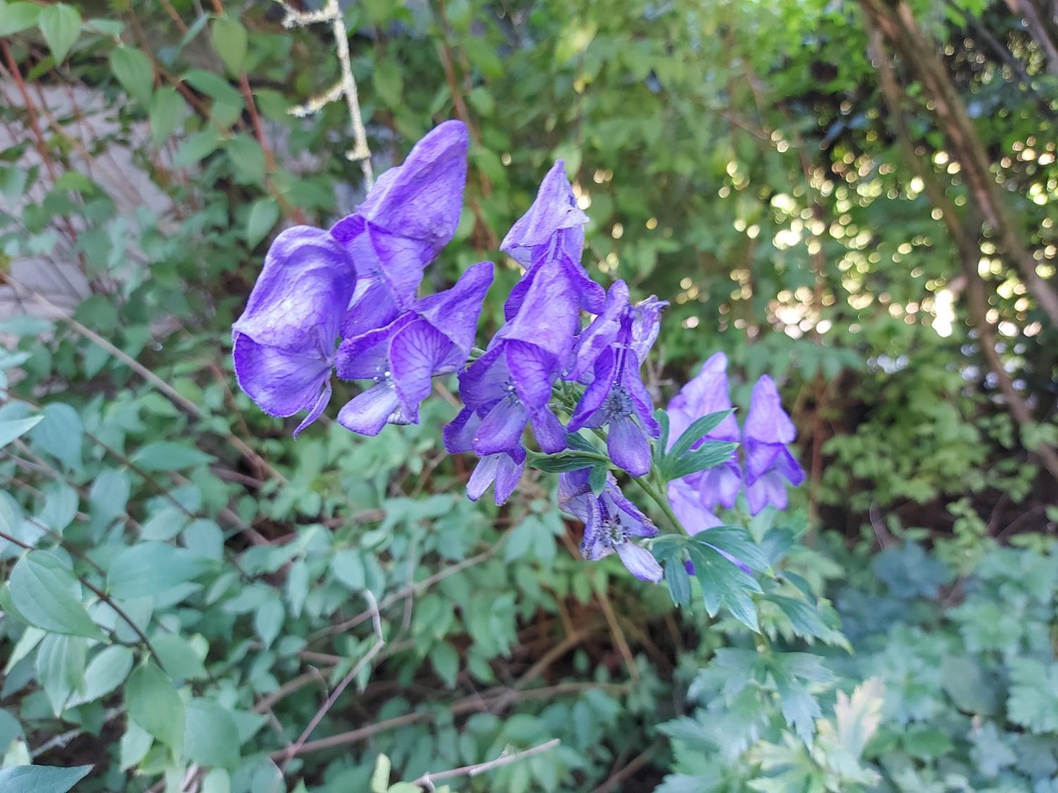 Der er stadig tapre blomster, der bare blomstrer videre – eller som først er kommet i blomst her på det sidste. Det gælder for eksempel oktoberstormhat, der lyser blåt ovre ved dronningebusken.