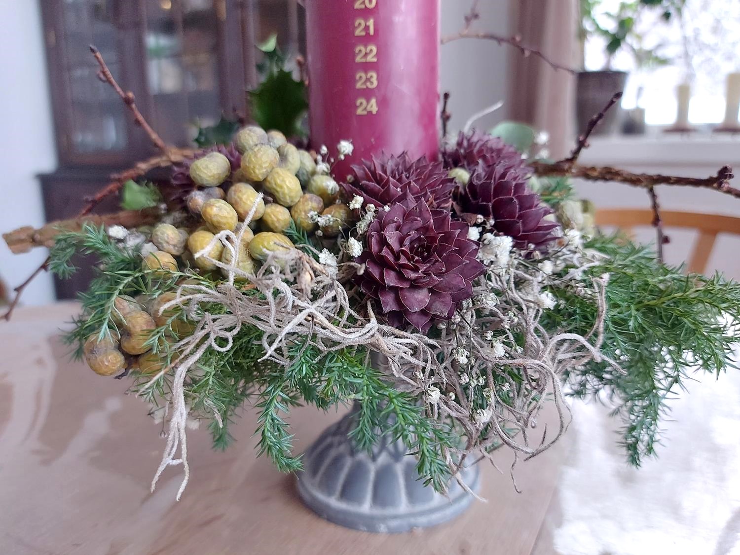 Planer om at ryste lidt sne af nogle grene for at hente mere kristtorn, efeu, buksbom og cypres – og lave flere juledekorationer.