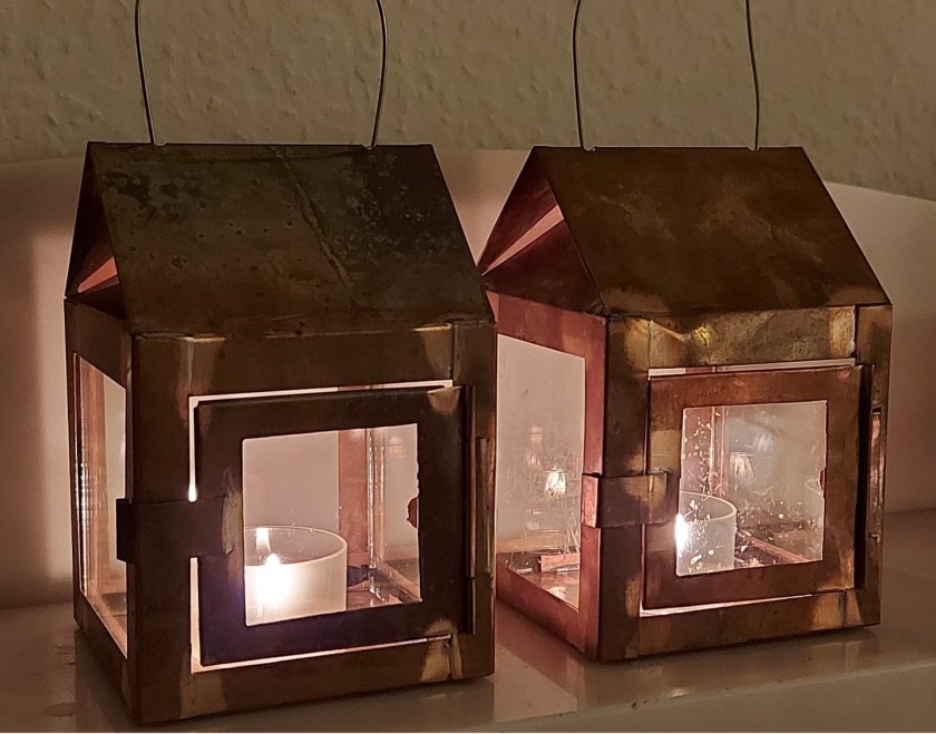 Nu hersker der ro på servanten. Den lille hellige familie har slået sig ned ved træets fod med hyrde, tre hellige konger, lidt husdyr og en engel til at synge Hosianna i det højeste. De to kobberlygter kan lyse for dem, når stjernene går ned. Vi kommer tættere og tættere på jul, og en eventyrlig en af slagsen skal det være.
