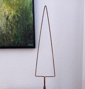 Træet og kobberholderen købte jeg hos Den Gamle Mølle i Harlev i november, og indtil videre har jeg været helt tilfreds med at se på trådsilhouetten – enkel og smuk.