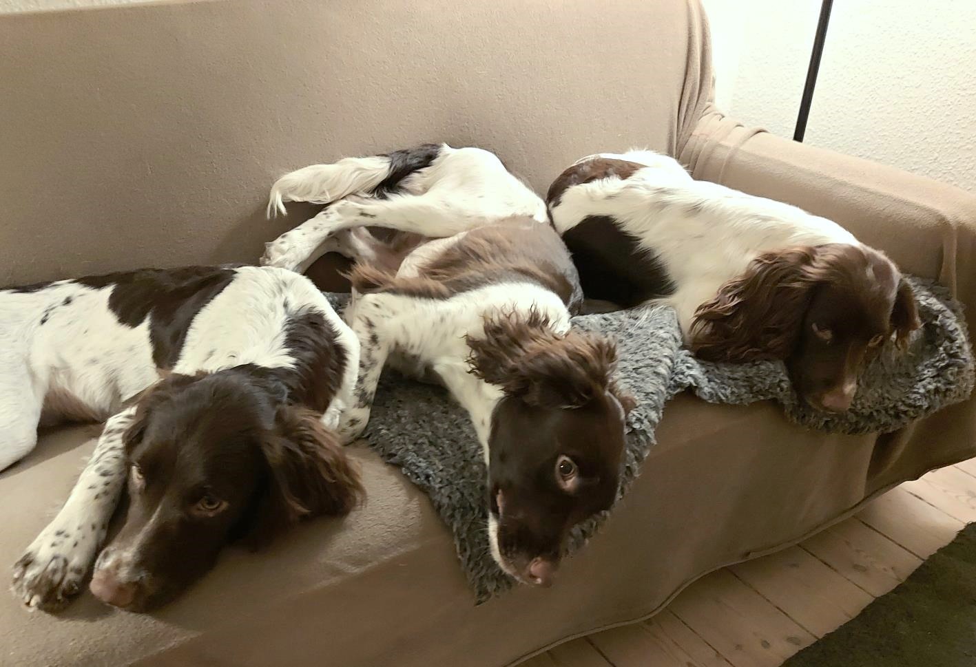 Hundene har ingen anelse om, hvad vi går der og har gang i. De synes bare, vi skal hygge os med dem inde, når vi altså ikke skal ud på marken. Jeg tænker, vores juletræ bliver lidt spøjst i år. Ingen pynt på de nederste grene, for 7 måneders hvalpe skal man ikke stole på, når det gælder pynt. Men tager man sine forholdsregler, skal det nok gå godt. Også med hele tre hunde omkring træet.