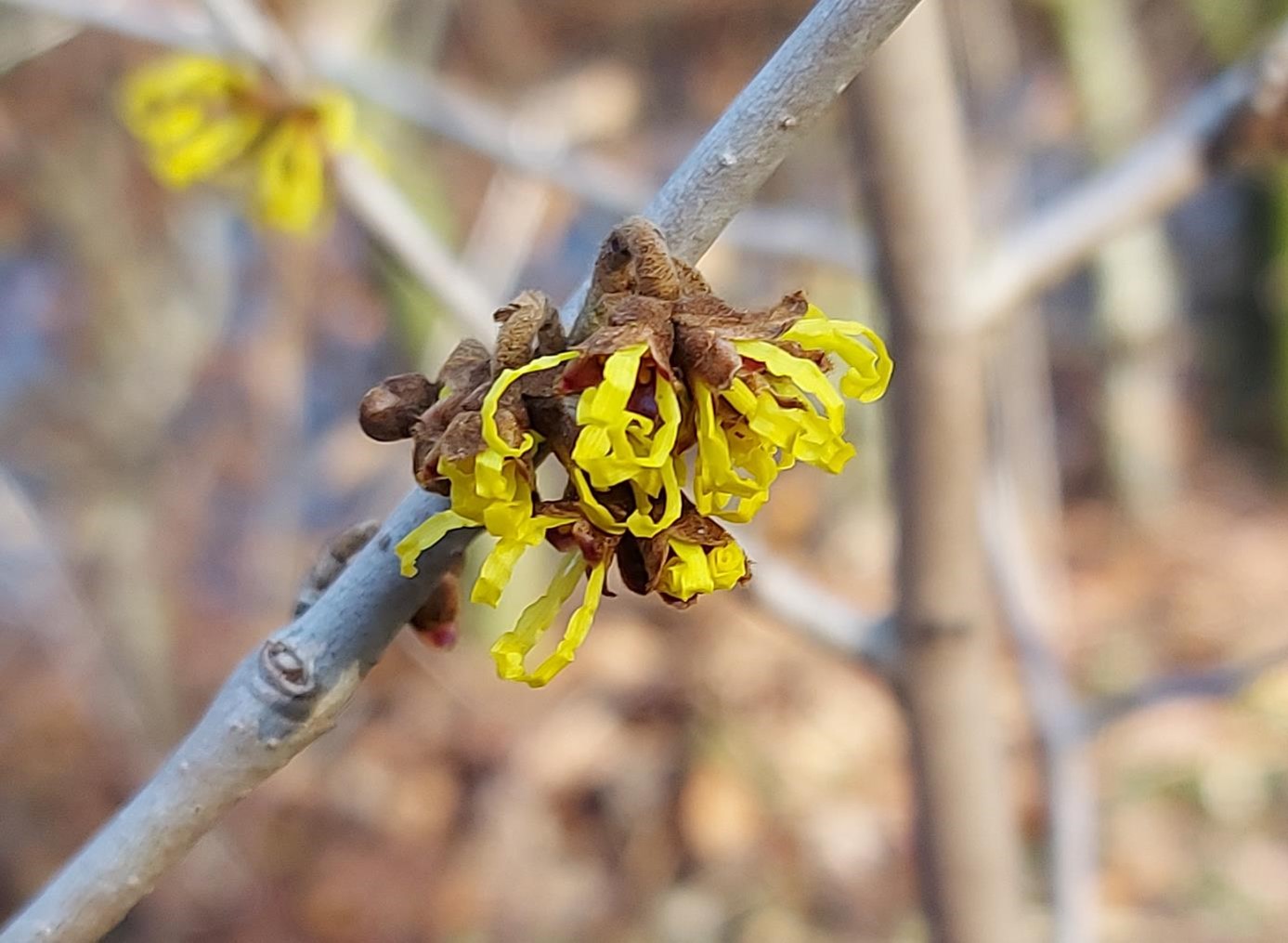 Men der er en busk, der står på spring. De knopper har hvilet længe nok, synes den, og snart vil de krøllede, gule blomster folde sig ud. Midt i den mørke vinter. Det er den lille troldnød, jeg fik i fødselsdagsgave sidste år.