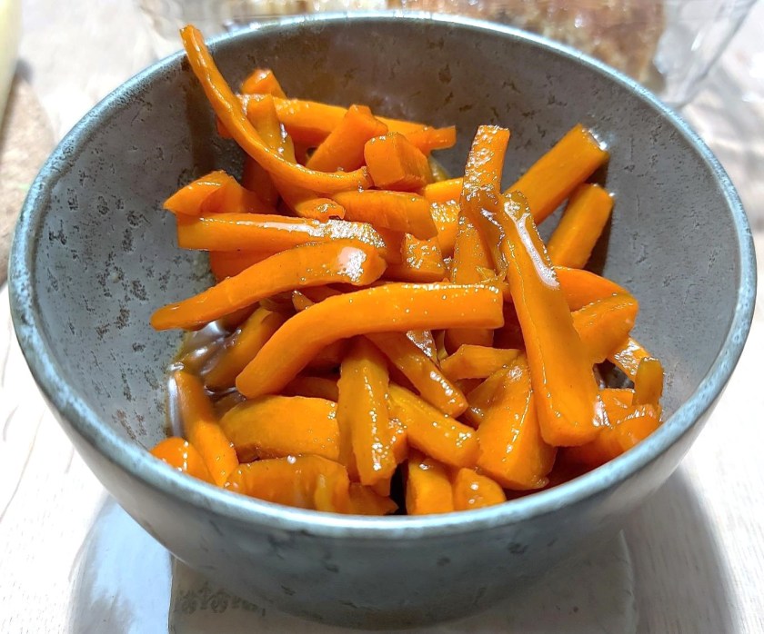 Det er dog ikke den opskrift, vi har lavet oftest siden januar sidste år. Det er de spicy glaserede gulerødder med sennep, der derfor helt ekstraordinært får lov at komme med. De gulerødder smager især godt, når de er lavet af de store vintergulerødder med den dybe smag.