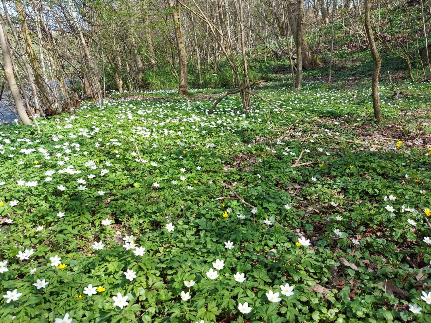 April kom, og med april kom også foråret. Maggie var nu med hvalpe, og efter tab og sorg kom forventningen om nyt liv i huset. Men det gemmer vi lige til maj, for det bedste billede i april udtrykker selve sjælen i den måned. Skovbunden i den gamle æblehave, dækket af anemoner.