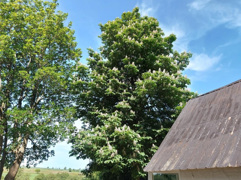 og den store kastanje stod med millioner af blomster.