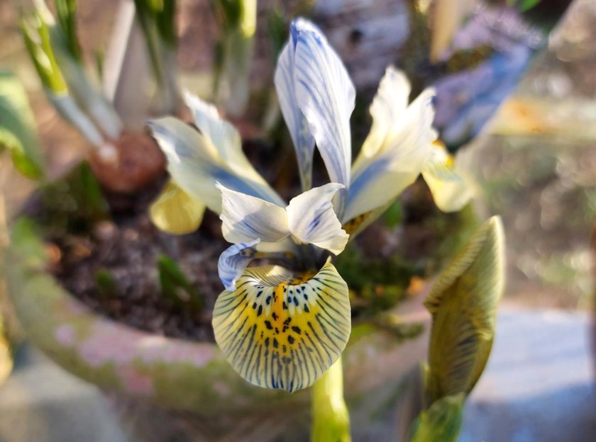 Nu dukker de små torpedoformede spirer op i haven og folder sig ud til de yndigste, kønneste og mest fortryllende små iris. Det er våriris, iris reticulata – den første iris i haven hvert år.