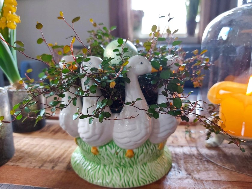 I denne uge går jeg all-in på påskepynt. Vinduespudseren har været der, så ruderne stråler (indtil næste gang blæst og regn), potteplanterne har fået forårskur, påskeskålen er fundet frem, og alt er klart til forårs- og påskepynt. Påsken er den bedste pyntesæson. Fuld af forår, håb og nye begyndelser.