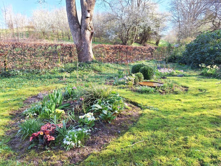 kære Karen 🌷det er overvældende hvert år når alt vokser med raket fart😃men vi når det jo altid hen ad vejen . I øjeblikket glæder jeg mig over at erantisblade ol. vokser sig højt og dækker lidt af ukrudtet . Græsset er lige blevet slået , (læs de små tuer af græs der er tilbage mellem mosset)😅det pynter lidt på det hele