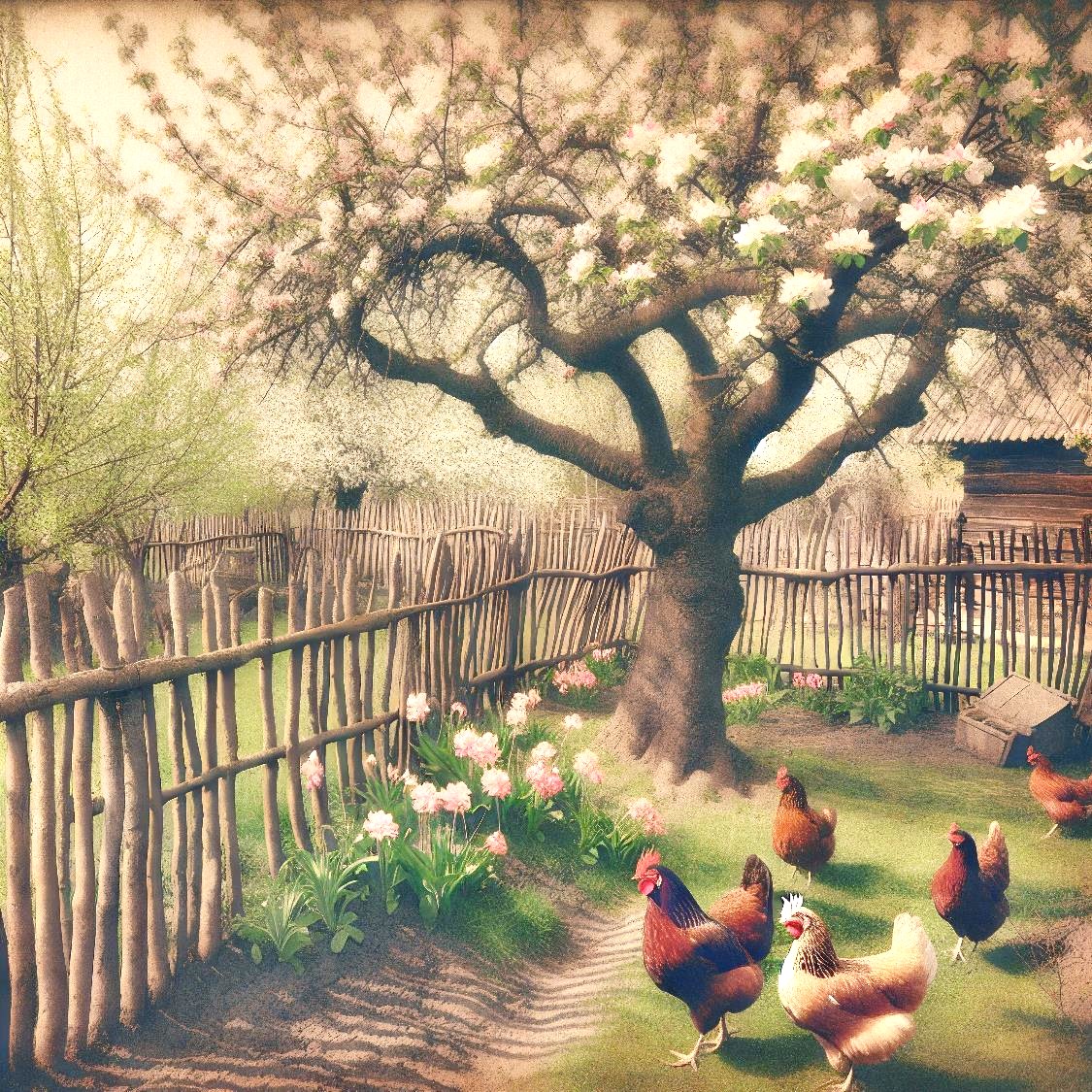 Når vi engang ikke er her mere, er der måske nogen, der vil bruge store maskiner til at rydde den gamle æblehave for selvsåede mirabeller og ahorn og gøre den til en frugthave igen. Det bliver ikke os, for vi har mere end nok at gøre med at holde resten af haven, der jo altså er på omkring en tønde land. Men tanken om en velordnet frugthave – hegnet ud mod vejen og op mod skrænten og med høns til at tage sig af ukrudtet under træerne? Det er en dejlig tanke.