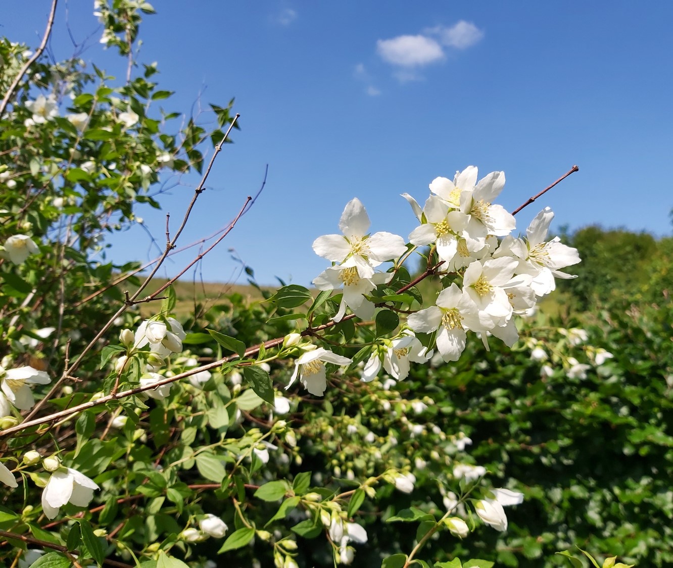Så kommer majs hvide bølger, slåen som skyer over markerne, kirsebær, æbler, hvidtjørn… det kører som en film på fast forward.