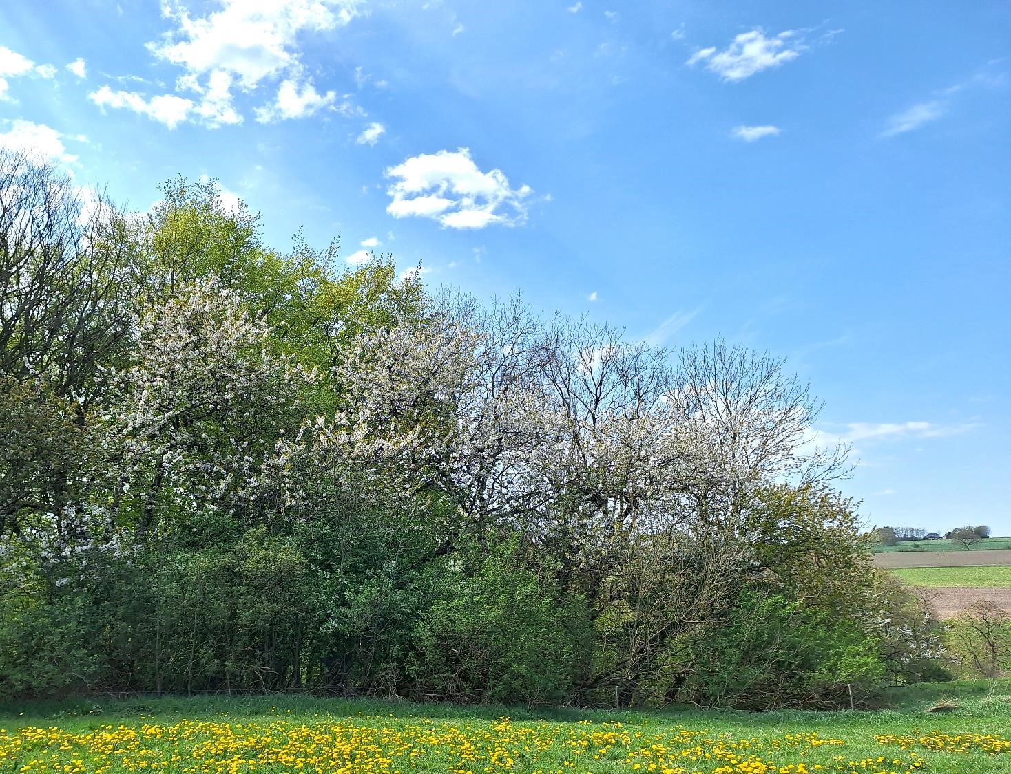 Maj starter med mælkebøtter i græsmarken og med træer, der kun lige er ved at springe ud. Før man ved af det, er mælkebøtterne afblomstret og alle træerne ved at blive grønne.