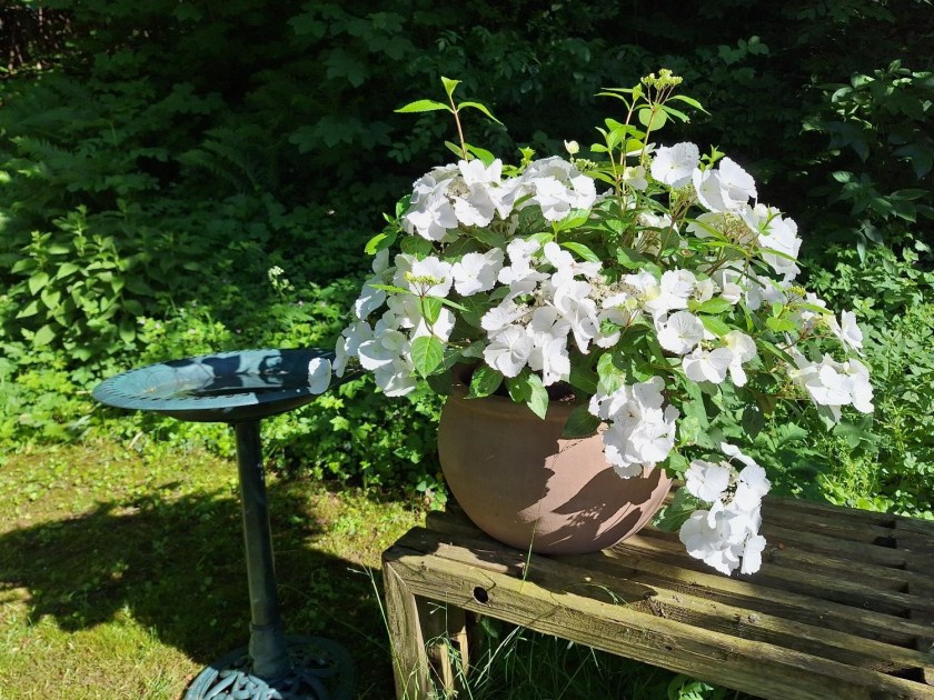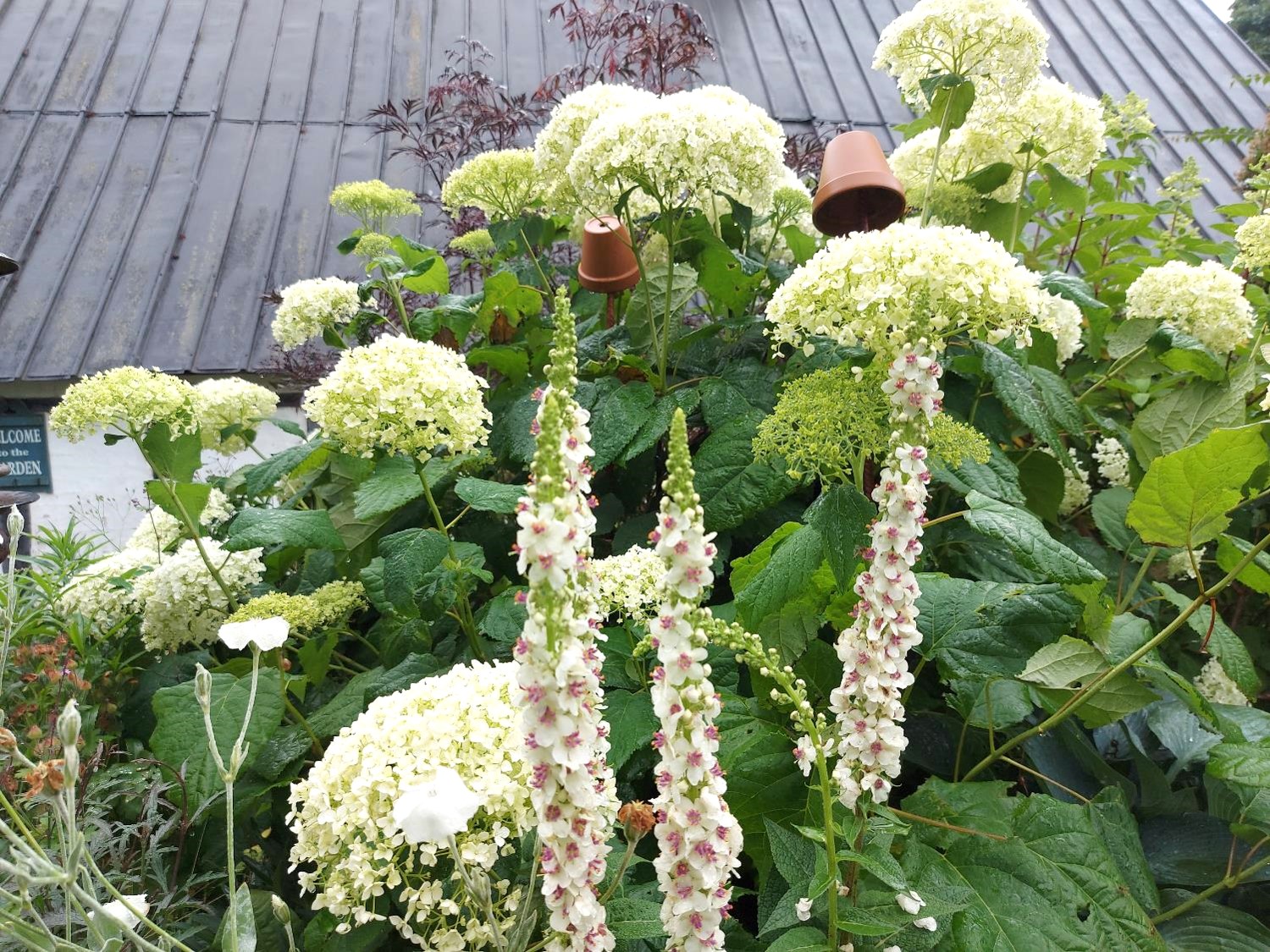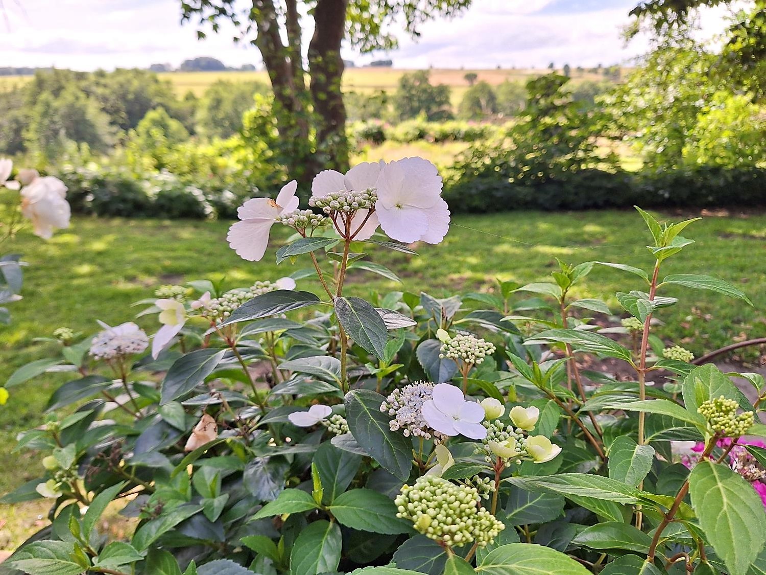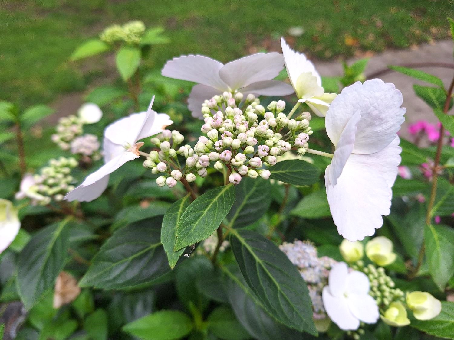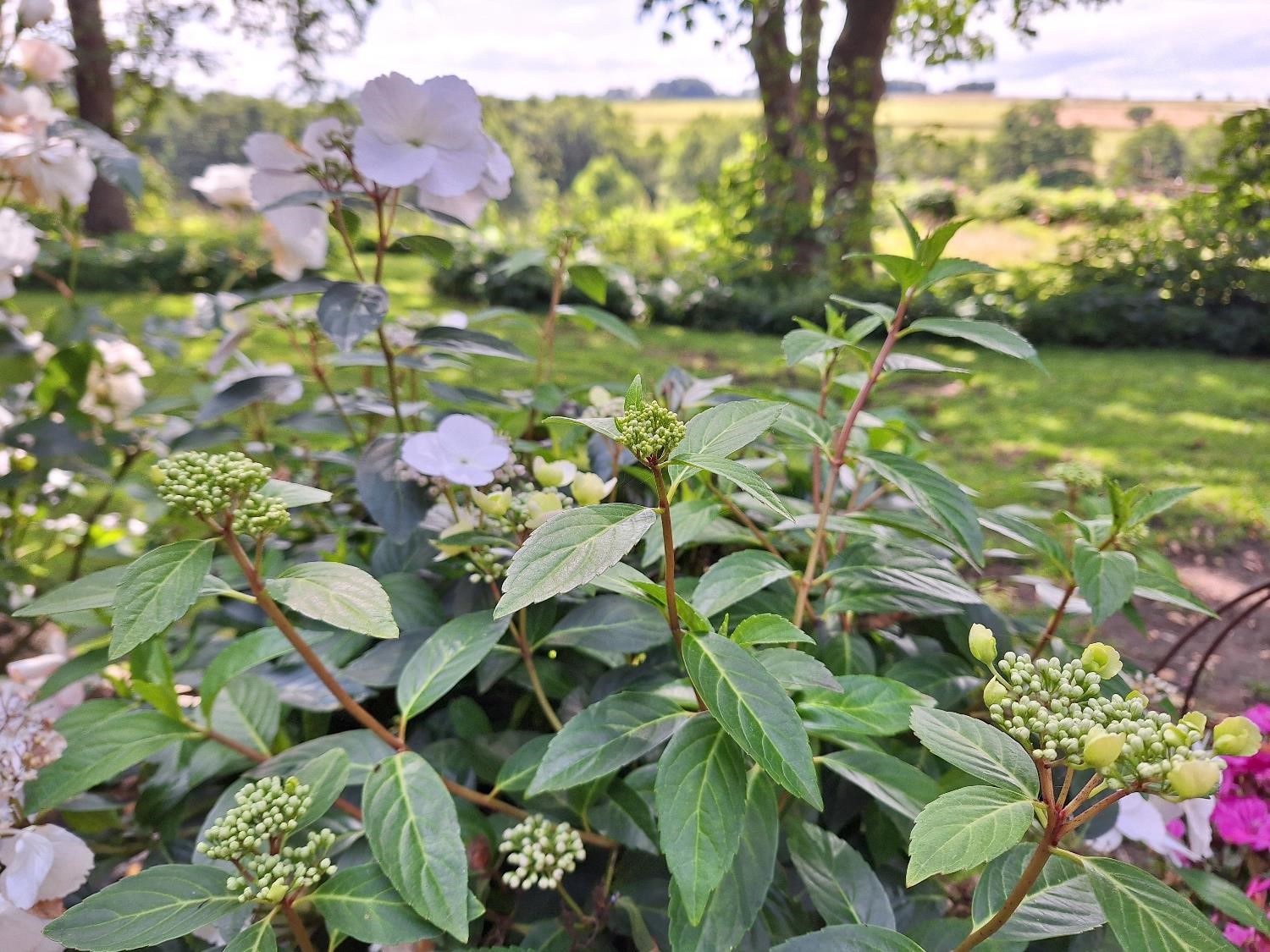 Syrenhortensia og Annabelle blomster også på de skud, de sætter samme år. Altså på førsteårsskuddene. Derfor blomstrer de så overdådigt her, og de har indtil videre været mine favoritter og også de eneste hortensia i haven efter flere forsøg med andre slags.