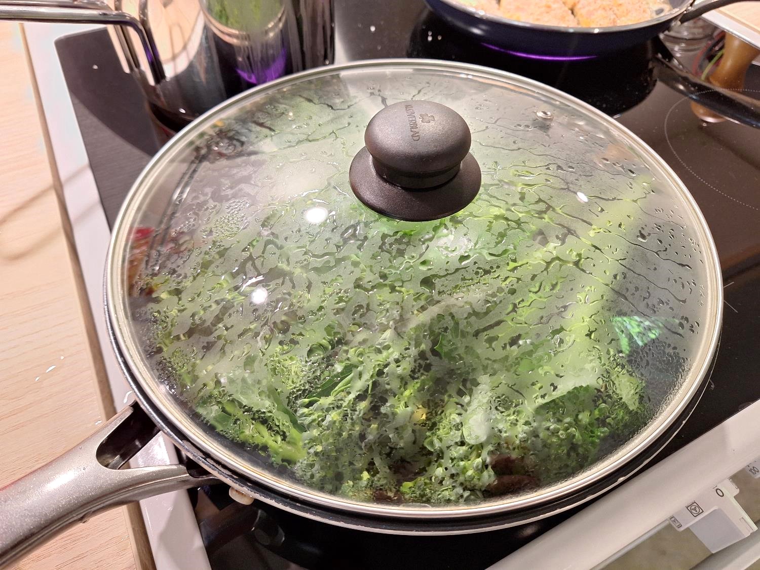 Start med at finde en stor pande eller bred gryde frem – en med låg. Læg broccolini i og dæk med vand. Giv dem et lille drys salt, tænd for blusset og bring vandet i kog. Lad dem koge i 3-4 minutter.