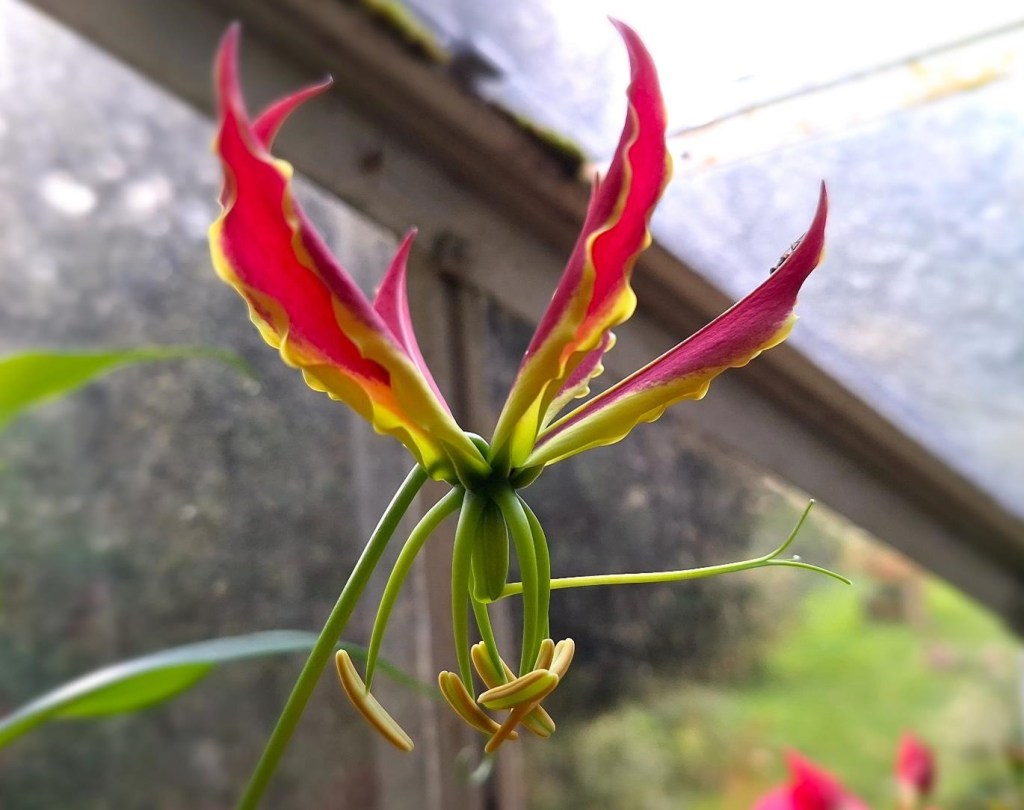 Den blomstrer igen. Pragtliljen. For fjerde gang. Sådan en knold er altså værd at investere i, hvis man kan lide eksotiske planter i drivhuset – og det kan jeg.