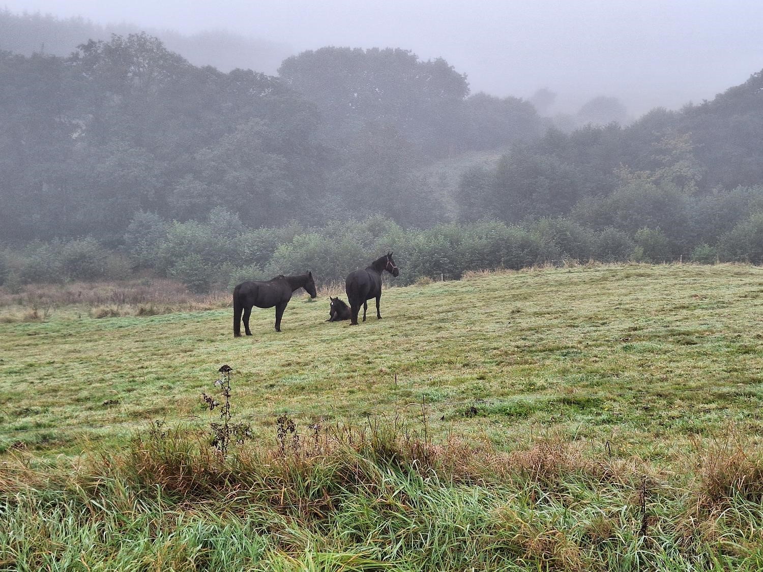 Typisk septembervejr, ikke? Tommetyk tåge over bakkerne fra ud på morgenstunden og frem til midt på formiddagen, hvor solen får mere magt og brænder tågen af.