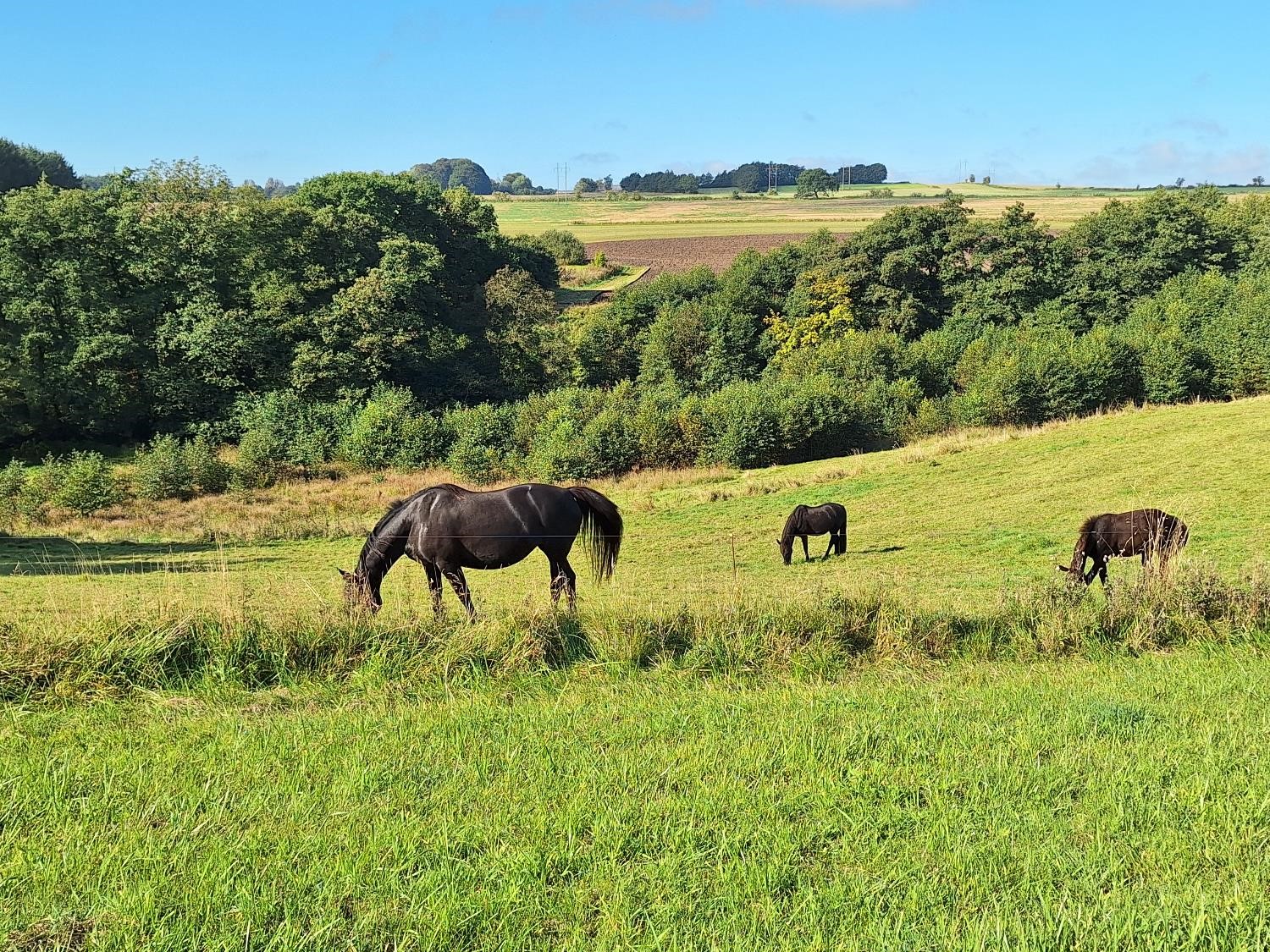 Det er dejligt at bo lige midt i det. At mærke det. Den kolde, våde tåge i ansigtet om morgenen, tågehvirvlerne, der tynder ud efterhånden og senere den varme sol på kinderne, når man kigger op mod solen i græsmarken, mens hundene spiser æbler fra det vilde æbletræ i hegnet.