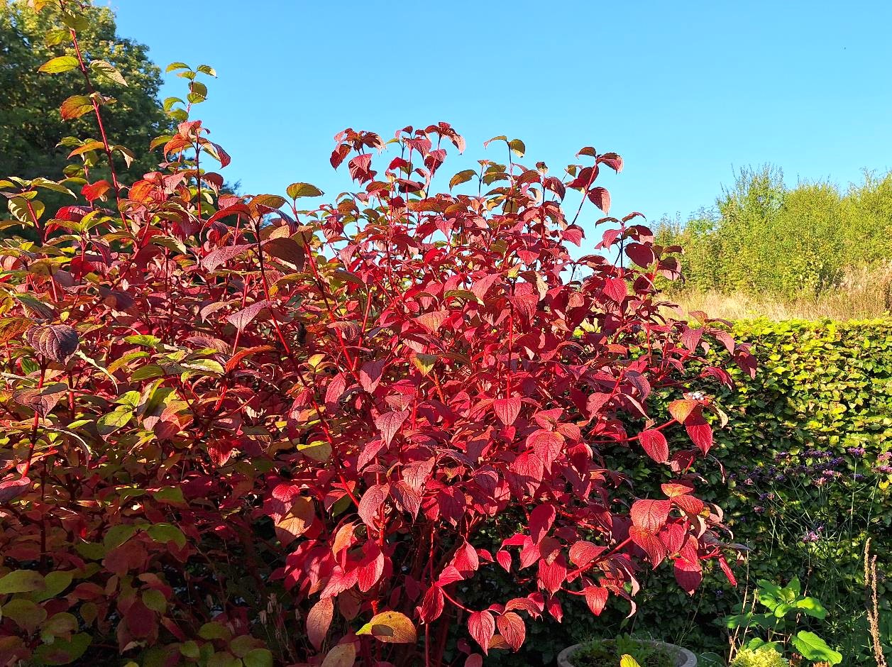 I vinduerne står der nogle af de kønne HibisQus Petit Orange, og for at understrege årstiden havde jeg sat grene med bær fra dværgmispelbuskene i hegnet.