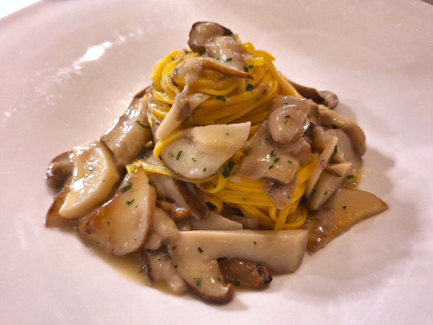 Da restauranten havde købt en stor portion funghi porcini hjem fra Toscana, blev de stjernen i hovedretten. Hjemmelavet og perfekt kogt pasta med en overdådighed af de lækre svampe i en cremet sovs.