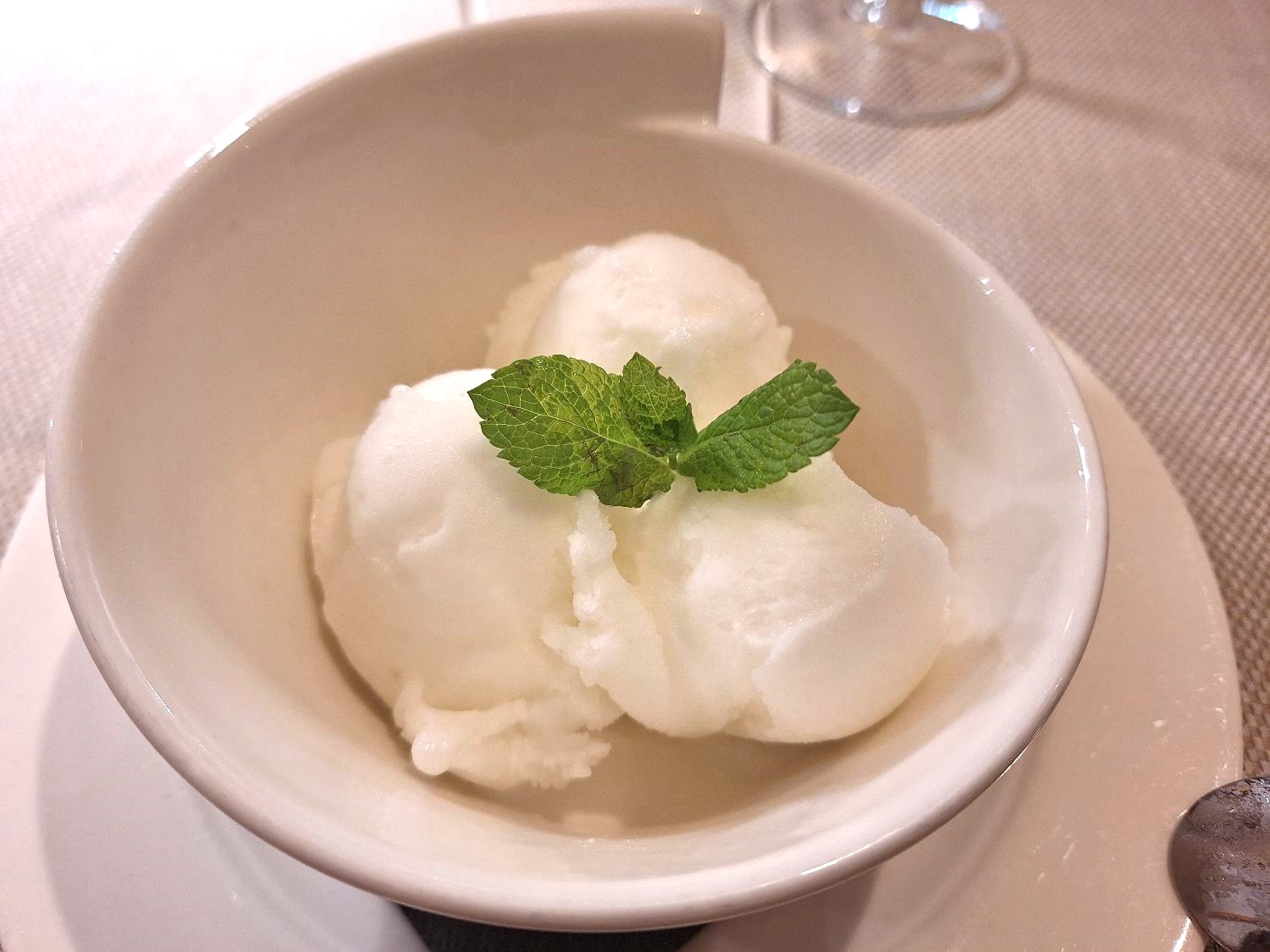 Nu var vi meget mætte, men der blev alligevel plads til en skål citronsorbet. Ingen – og jeg mener virkelig ingen – kan lave is som italierne.