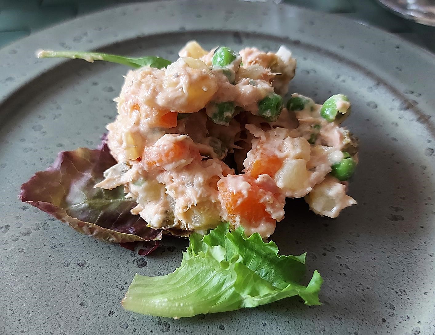 Marinerede peberfrugter med ansjoser, løgpizza i små stykker og den berømte Insalata Russa – den ‘italienske’ salat at se til, men med æg, sure agurker, kartofler og tun ud over de kendte ærter og gulerødder. Så har man en fin anretning til en fredag aften, hvor det både er gråt og blæsende.