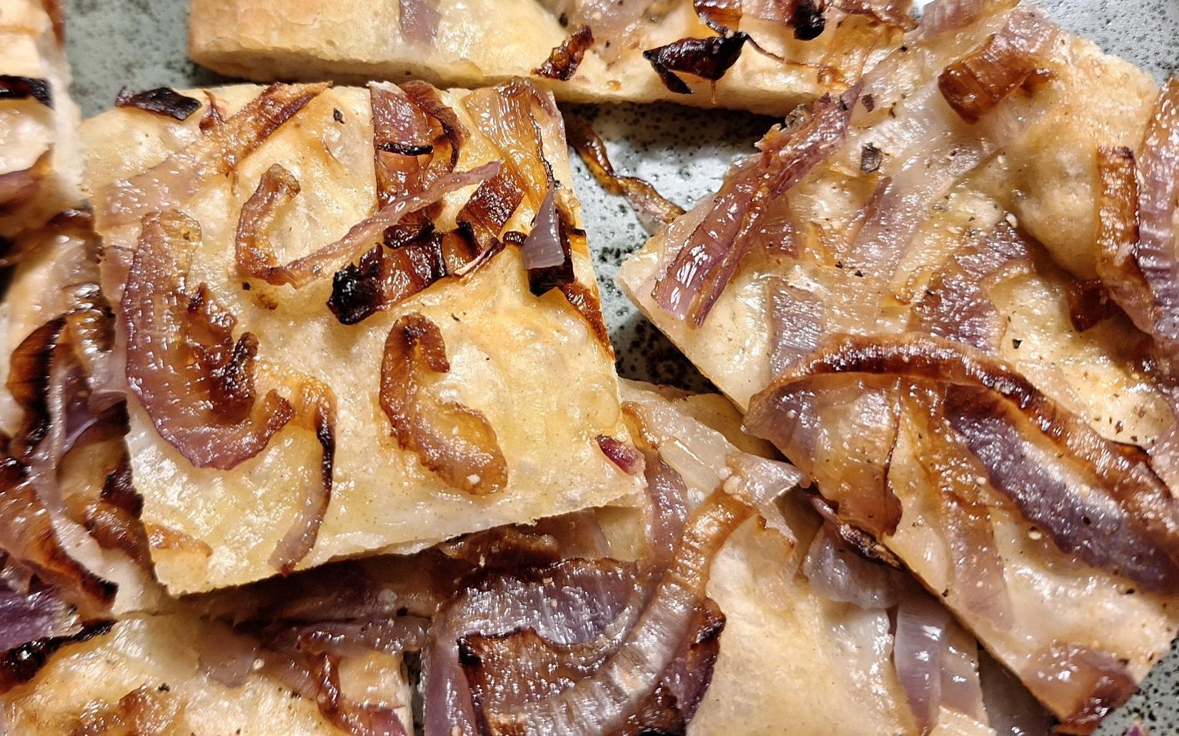 Til løgpizzaen, som man får serveret skåret ud i små stykker som brød til antipasti i Piemonte, skal man bruge: