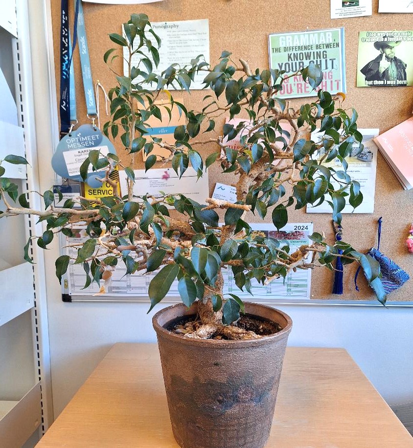 En anden plante, der også har det godt i kontormiljøet er stuebirk. Også den ser frodig ud, og den har heller ikke brug for særlig meget pasning. Den, jeg har på kontoret, har overlevet flere nærdøds-oplevelser. Deriblandt over et halvt år uden vand under corona.
