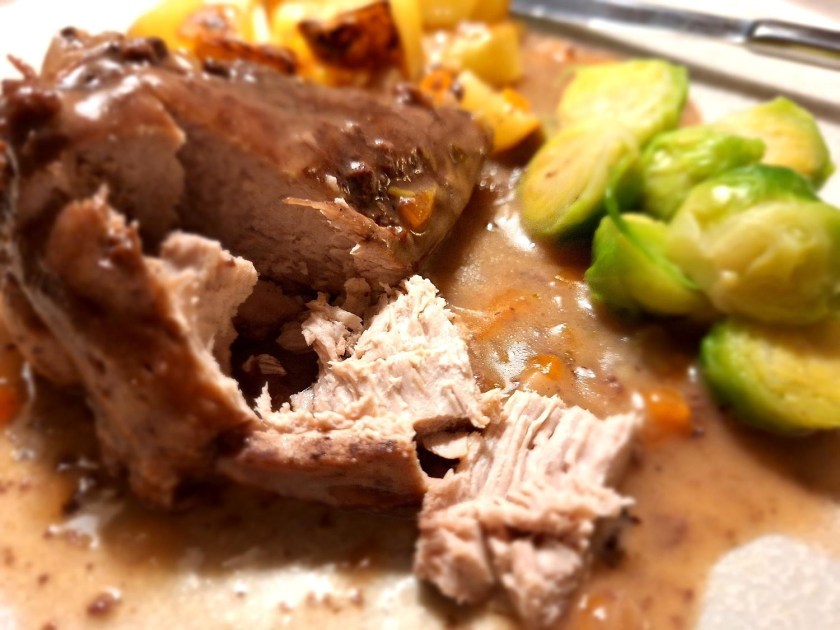 - Tag lårstykkerne op, og skum fedt af, hvis der er noget. Tilsæt fløden og kog sovsen igennem. Smag til og juster eventuelt sødmen i sovsen med lidt æbleeddike. Gulerødder og portvin giver let lidt for meget sødme.