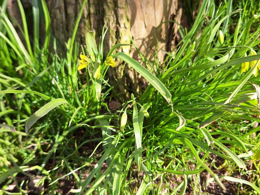 Hver dag, når man går tur omkring marken og i haven, opdager man noget nyt, der enten er sprunget ud eller er på vej til det. Lige nu glæder jeg mig rigtig meget over de små, gule stjerner – Almindelig Guldstjerne, der vokser i små tuer hist og her.