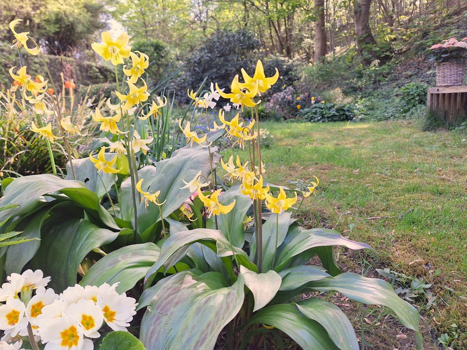haveprimula og de smukke, gule hundetand.