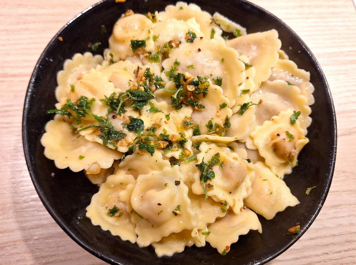 Når det skal gå rigtig hurtigt – aftensmad før hundetræning, møder eller andet, der betyder, man skal spise tidligt – er det godt at have en både velsmagende og hurtig ret på programmet. Sådan en ret er de friske ravioli, blandet med en god olivenolie, sprødstegt hvidløg, persille, citron og citronskal.