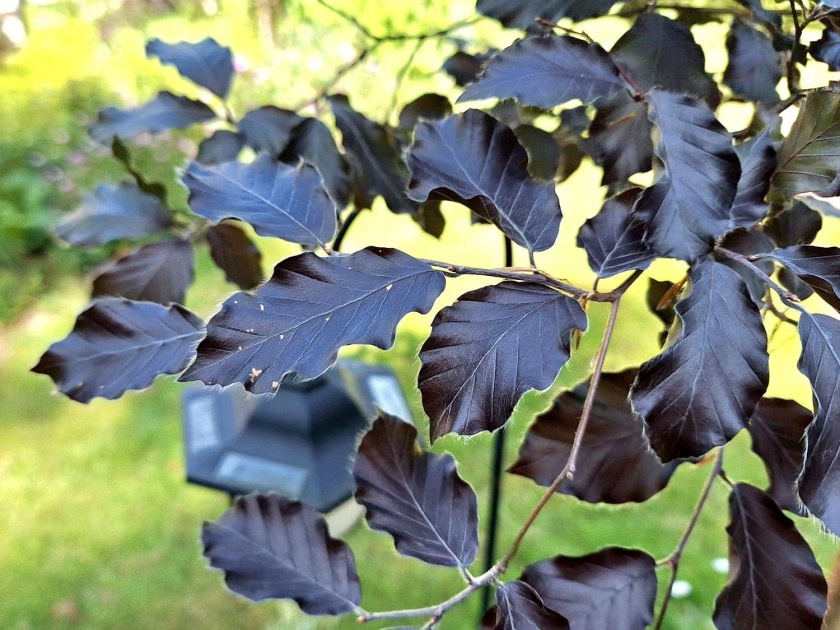 De røde blade er så flotte. Farven changerer fra rødbrun til næsten sort alt efter, hvordan lyset falder.