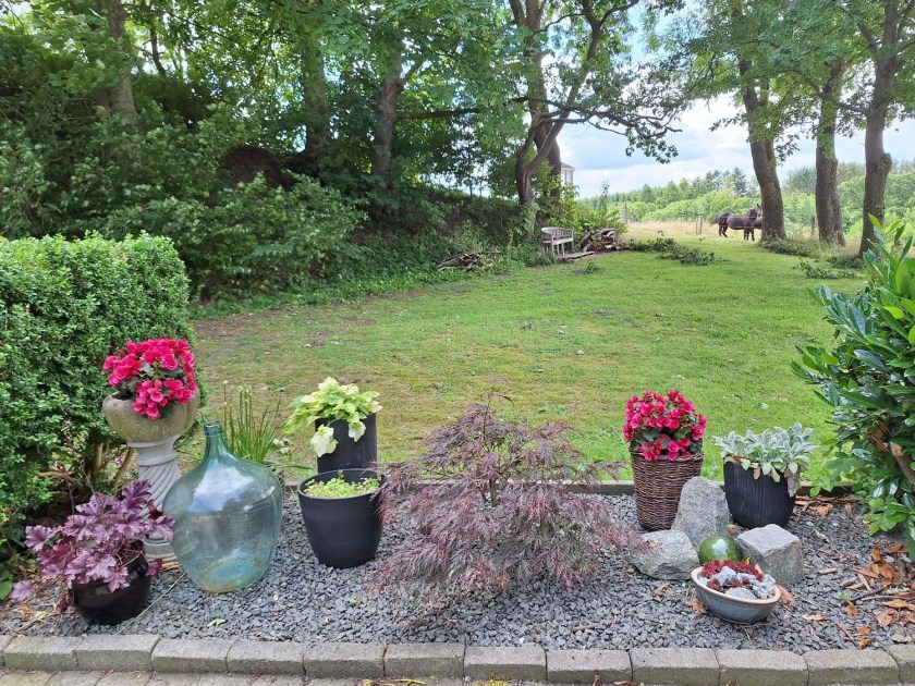 Indtil da står der et par små borde med mindre krukker til at flytte opmærksomheden fra skvalderkålene. Det er frøprinsen, der regerer der.