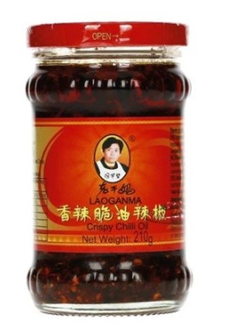 Til sidst et par ord om chili crisp i olie. Det er den slags chili, du tit finder på kinesiske restauranter, og man kan købe det på glas i asiatiske butikker eller i Inco. Det fås i forskellige styrker, men er generelt ret stærkt i sig selv. Det kan bruges lige der, hvor man mangler den der lidt dybe chilismag. Til nudler, til forårsruller – og altså også her sammen med havreris.