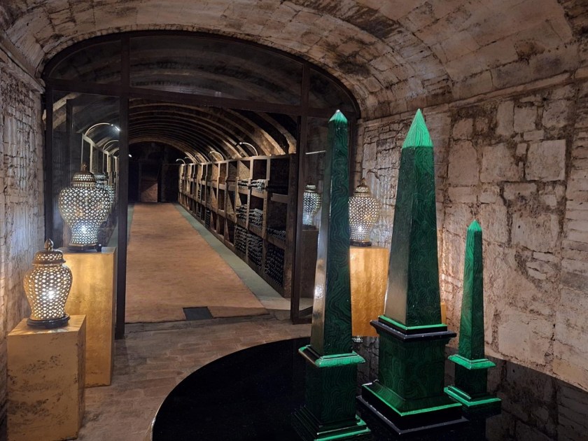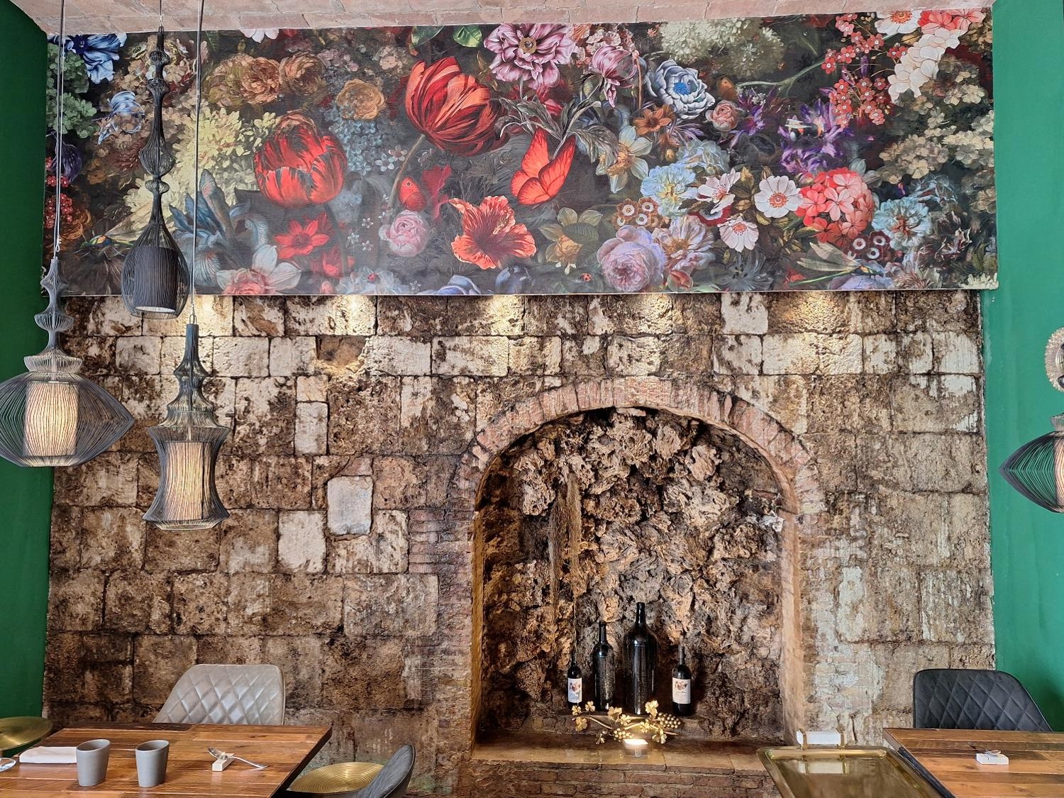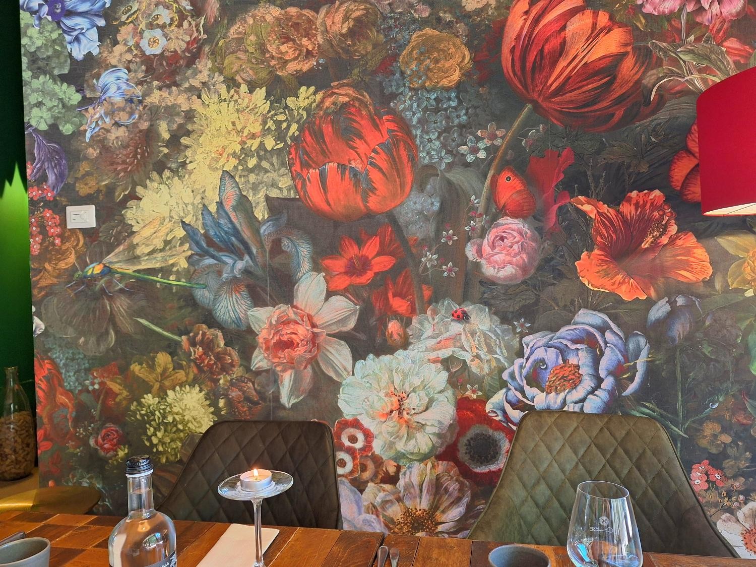 Samtidig var der en rar og hyggelig stemning. Det hele var gennemsyret af stor kærlighed til vinen og stedet. Og den smukkeste indretning man kan tænke sig i smagelokalerne/restauranten. Jeg var vild med det tapet,