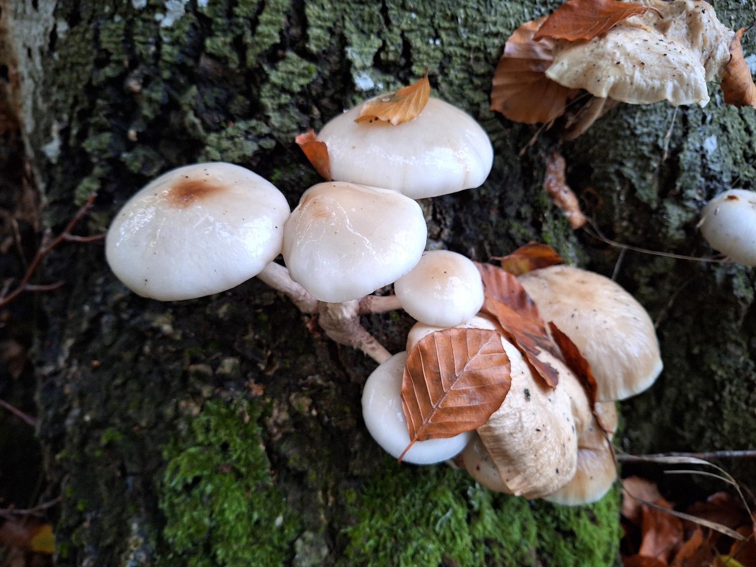 Men der er liv i døden. Tusindvis af svampe vokser på stammen og mørner den ganske stille.