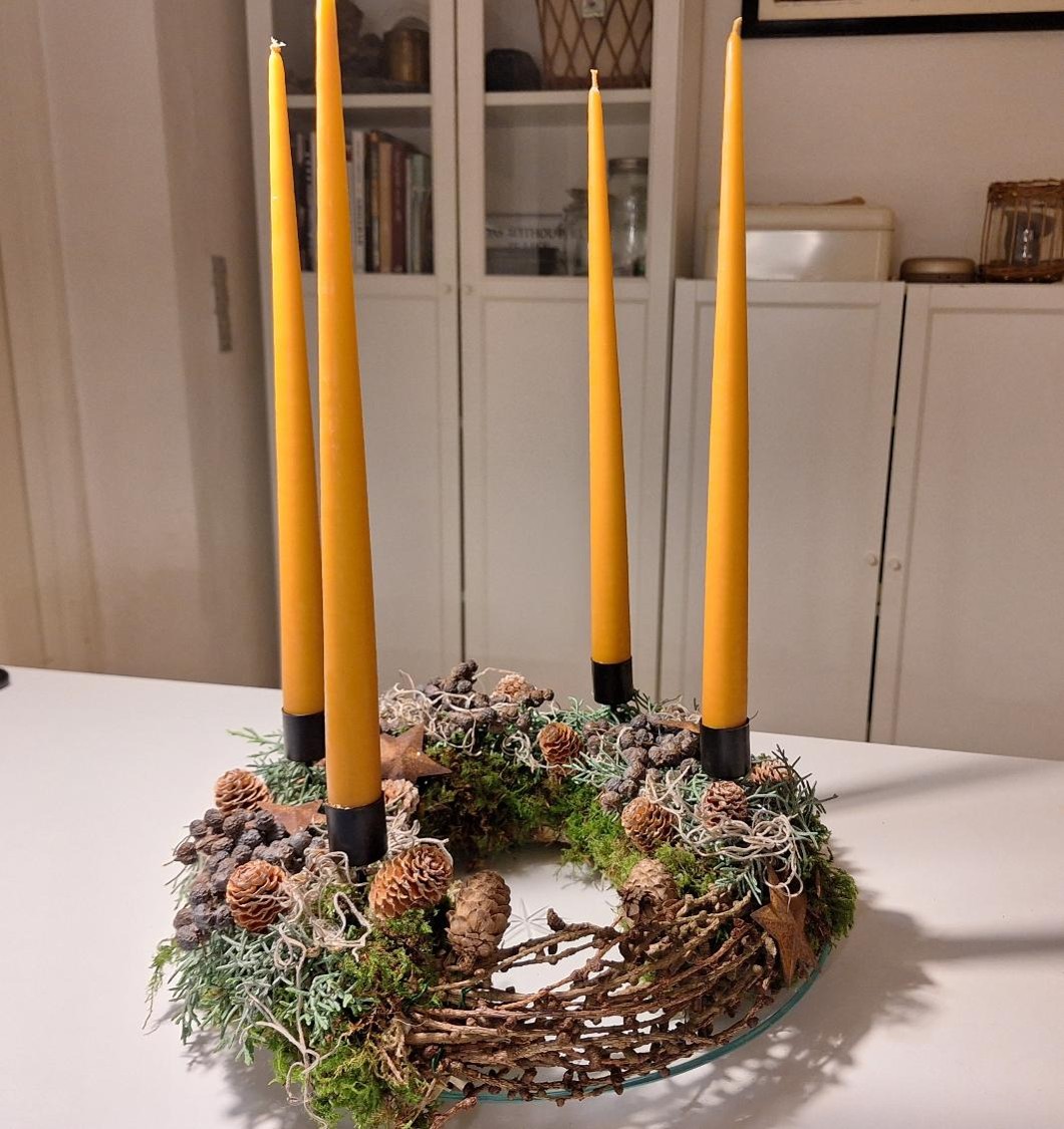 Der er en grund til, at det hedder adventskrans. Alt andet med fire lys er måske nok adventsdekorationer, men kranse er de ikke. De kan være firkantede og minimalistiske, de kan være lys på en række, men de er ikke kranse. Kranse er runde, og kransen symboliserer årets gang og årstidernes skiften. Derfor er mine adventskranse altid runde – kransformede, ikke?