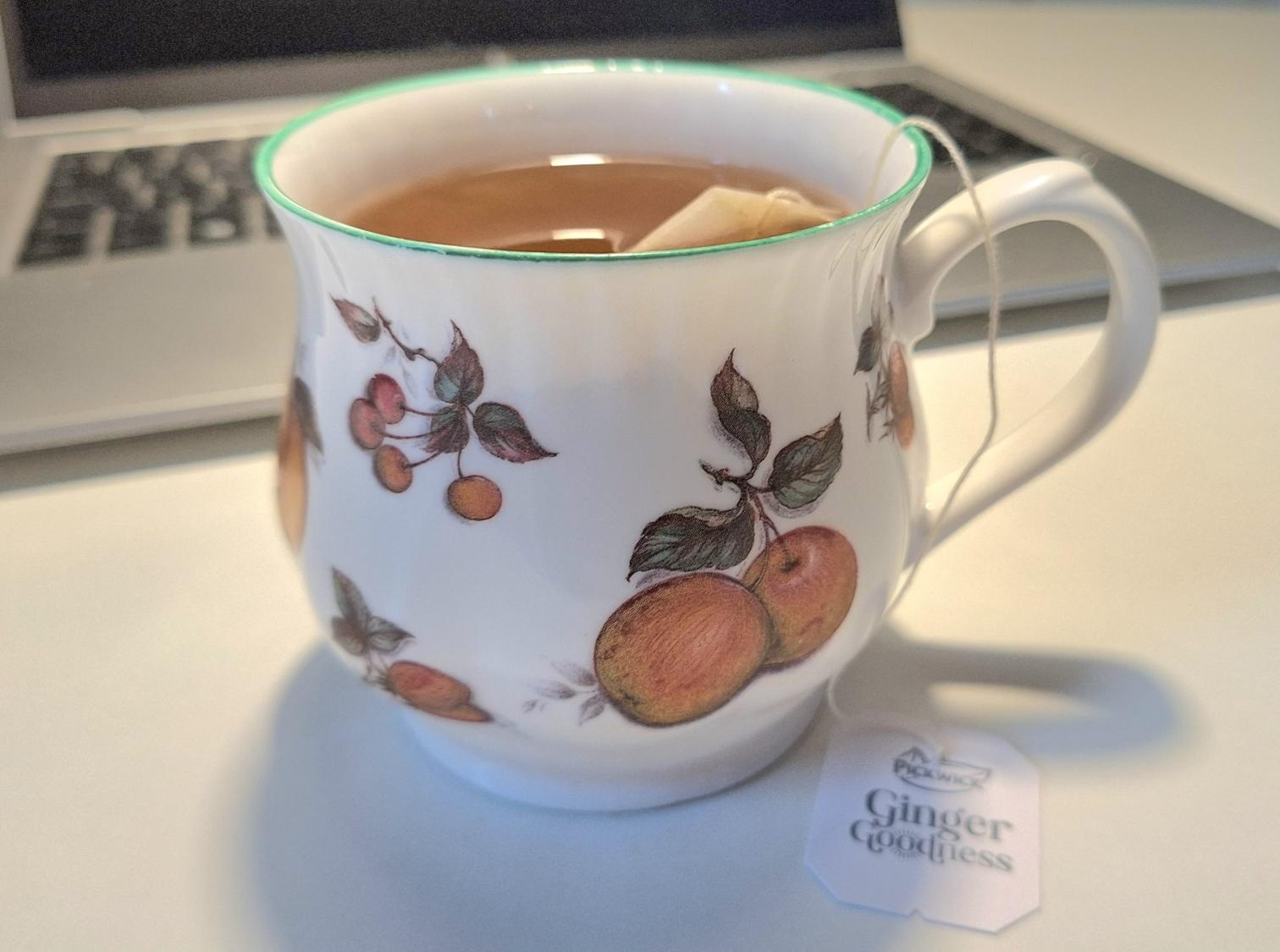 Vi er inde igen. Jeg holder en lille pause i arbejdet med en kop te med ingefær og appelsin.