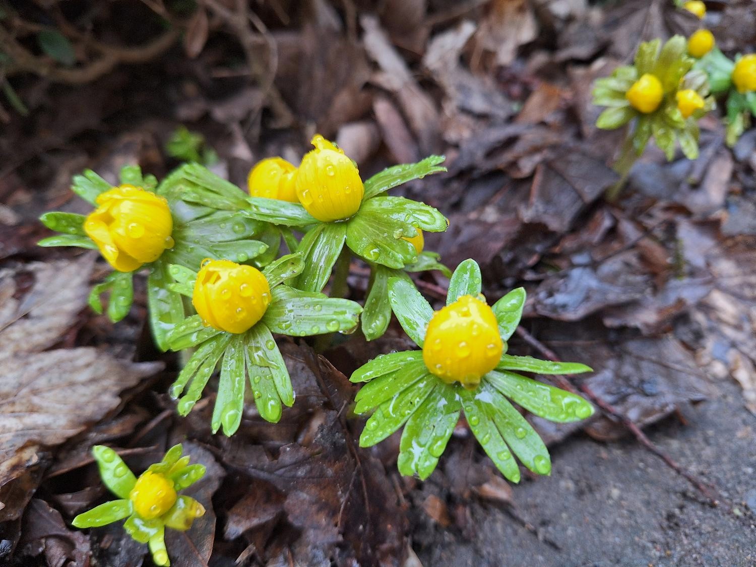 Det føles som forår, og de små, tidlige blomster er helt enige. Det er tid til at stråle, selvom man er dryppende våd. For dårligt vejr kan man sagtens tåle, når man er en tidlig, lille løgplante.