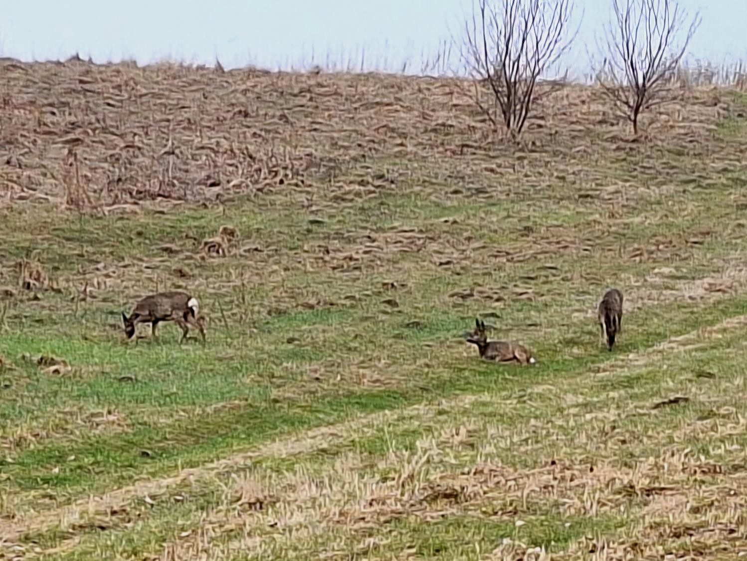 Mange tænker, at en rigtig forårsdag er en dag som i dag. Solen jog tidligt tågen på flugt, og man kan mærke den varme i ansigtet. På marken overfor går tre rådyr og nipper til græsset, der så småt er begyndt at vokse. Ren idyl. Jeg kan se dem gennem vinduet, men de er svære at tage skarpe billeder af, for der skal beskæres voldsomt, før man kan se dyrene.