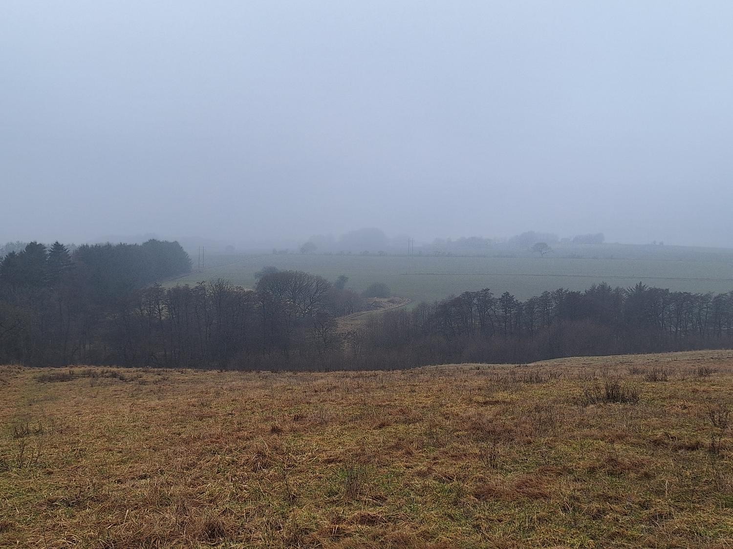 Det er en smuk, smuk dag i dag. Men en tågedag kan også noget. Der dufter af fugt og jord, og alle lyde forstærkes. Nede ved jorden lyser vintergækkerne.