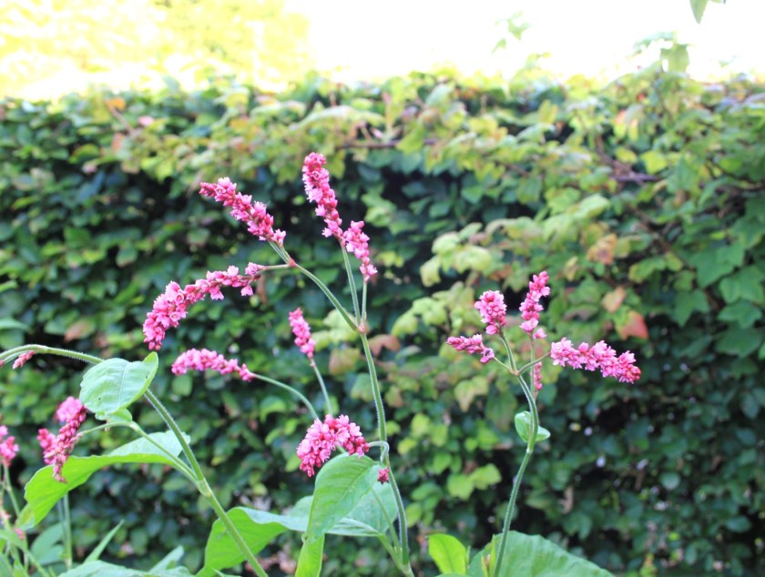 Nu blomstrer den endelig. Kiss me over the garden gate. Det er det sjove navn på den kønne, enårige pileurt, Orientalsk Pileurt, Persicaria Orientalis.