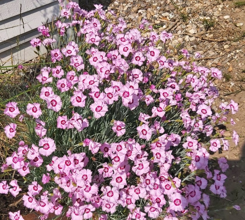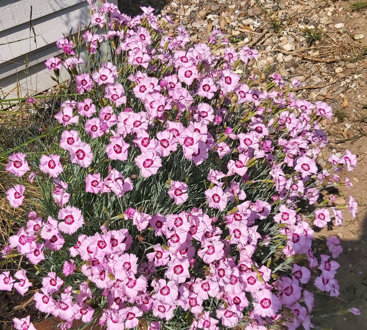 Nellikerne blomstrer i det lille, runde højbed ved pavillonen. Det ser skønt ud. Ikke mindst fordi, det er nogle helt særlige nelliker – ikke en sjælden slags, men en, der er kommet hertil på en minderig måde.