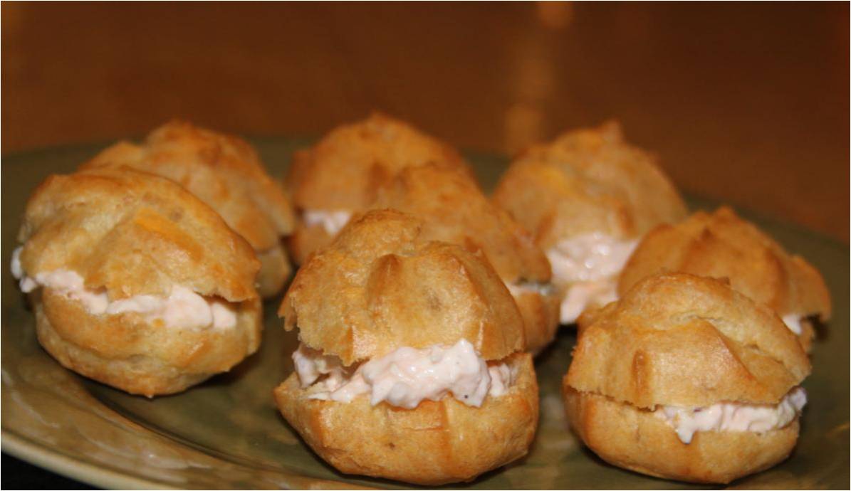 Bittesmå vandbakkelser med laksefyld til fredagsnippemaden. Og med henholdsvis hindbær og kaffecreme i til lørdag eftermiddag. Små himmerigsmundfulde.