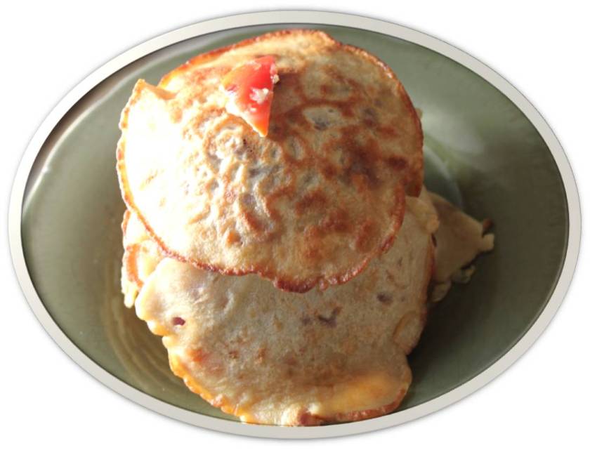 De er gode svitset i smør sammen med forårsløg som tilbehør til kylling eller som her i pandekager.