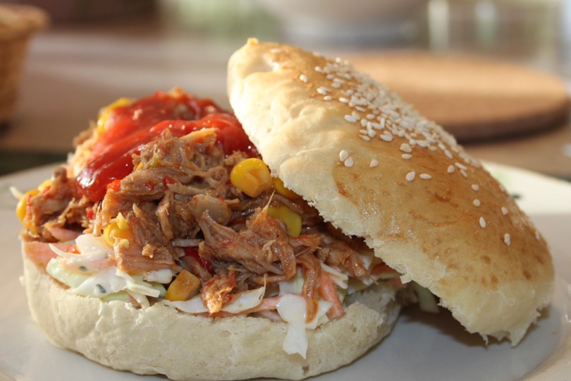 Lørdag havde vi lavet langtidssimrede nakkekoteletter med barbecue (opskriften fik nye billeder ved samme lejlighed) og der var en pæn portion til overs. Resterne blev til noget helt andet, som du kan se. Fortsæt med at læse “Pulled pork sandwich – af rester”