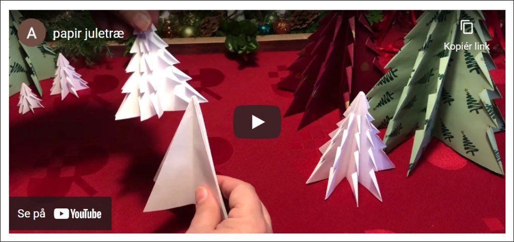 Det er Anni Kellermann, min medwebmaster på Skivholme kirkes hjemmeside, der står for dagens adventsgave, og i dag får vi en vejledning i at folde de kønneste juletræer af papir.