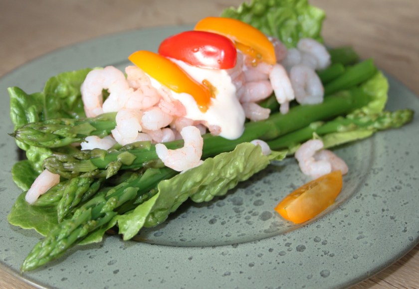Selve anretningen er der ingen hokus pokus i. Fortsæt med at læse “Forret med grønne asparges, rejer og hjertesalat”