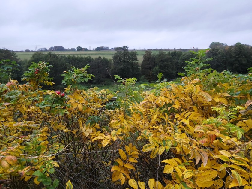 Nu trækker der skyer ind, og det er begyndt at blæse. Men i formiddags var det strålende solskin, og vi havde hundene med en tur over i vores lille skov.