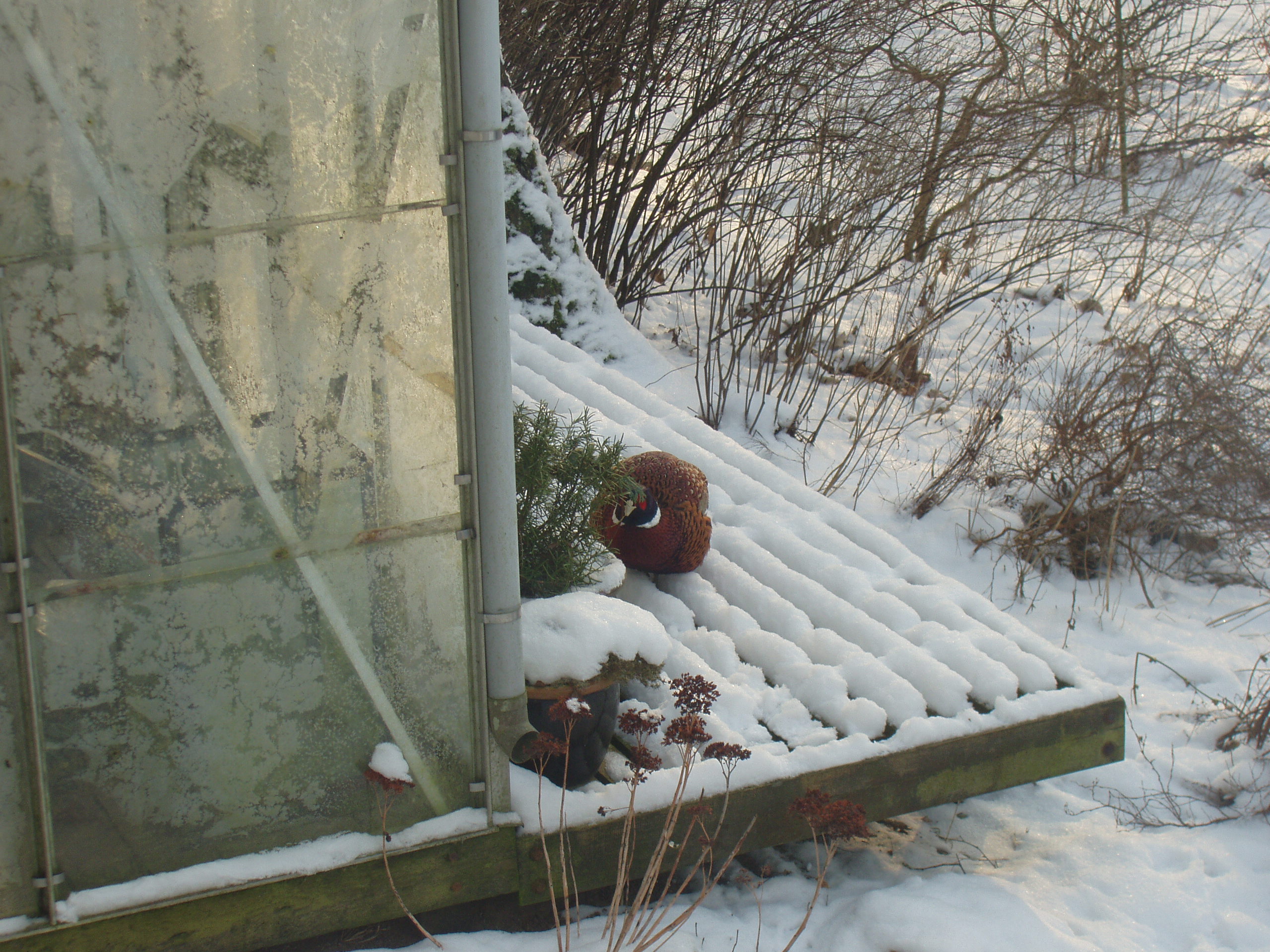Af og til er der fasan på menuen. Som oftest hører vi dem bare skråkke dernede i engen, og de spankulerer frimodigt rundt i haven. En gang i mellem er der dog en, der ender på middagsbordet.